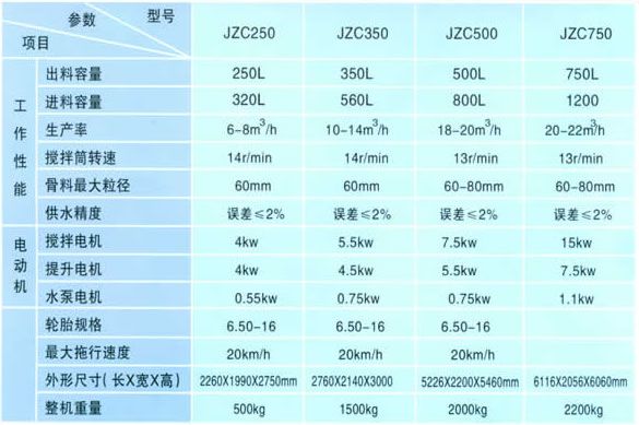 本系列攪拌機包括JZC250、350、500和750四種主要機型,其中JZC750型為固定式,除作為單機使用外,還可與配料機組合成簡易式攪拌站。其余機型均為移動式。